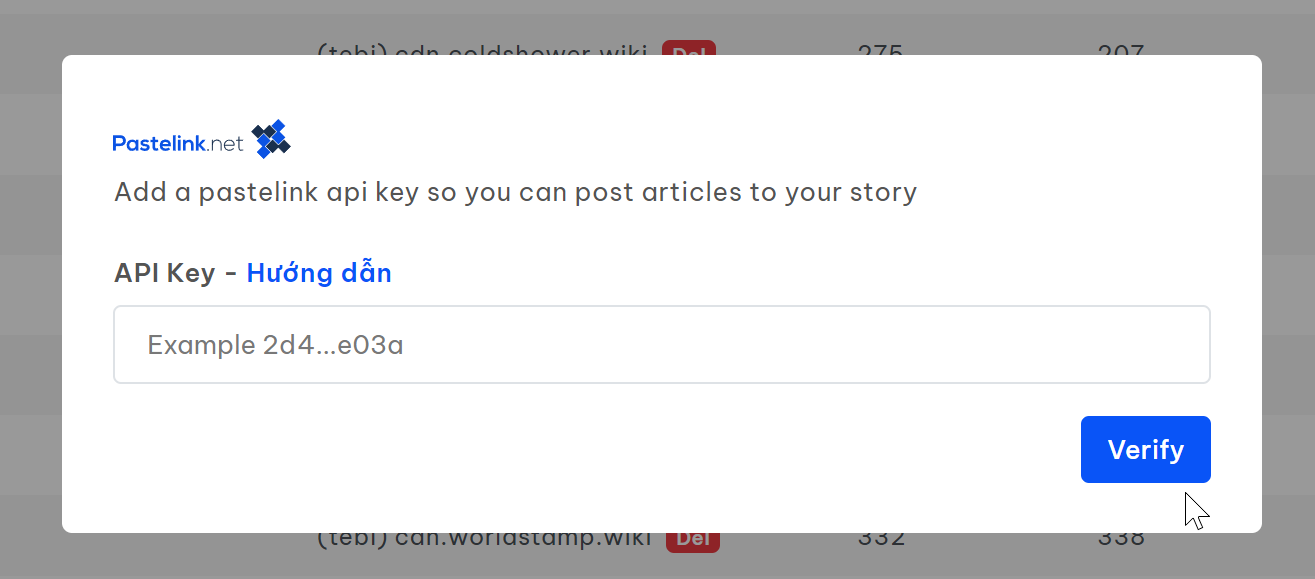 Để lấy API Key, bạn quay trở lại mục API của Pastelink (hoặc bấm nhanh link <https://pastelink.net/account/api>)&#x20;